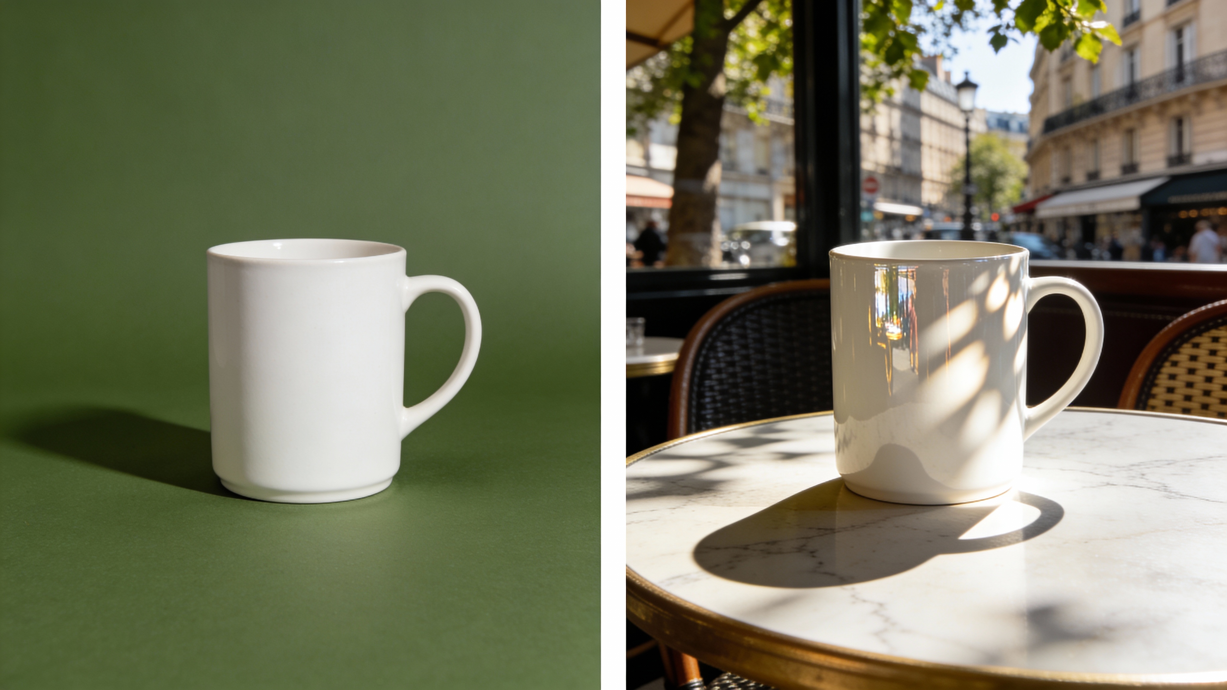 Seamless background swaps. Take a simple product shot and place it on a luxury marble table in a Parisian café. Shadows and reflections adjust automatically.