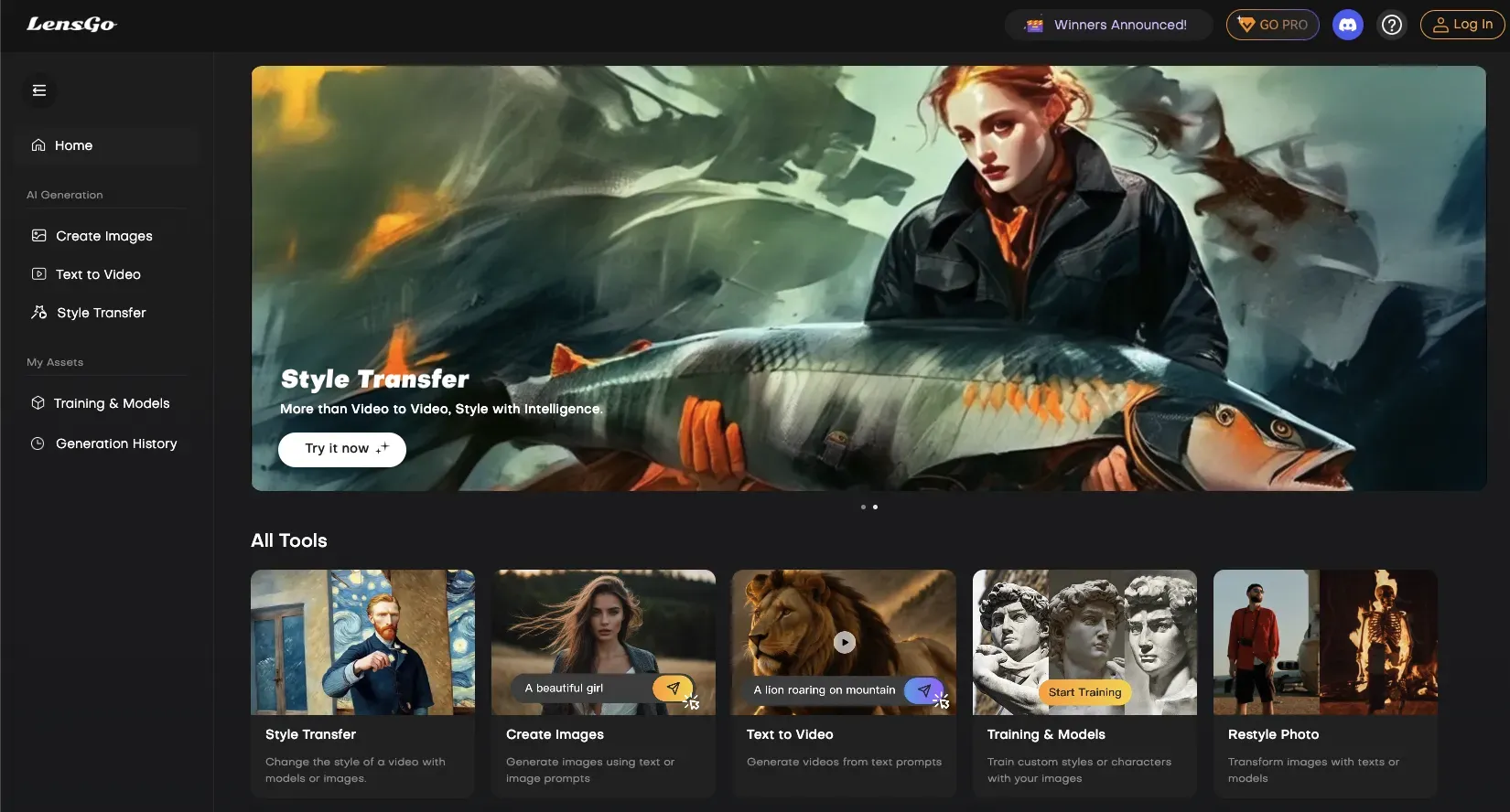 LensGo offers integrated text to image, text to video, image to image, and video to video models for creating customized visual content.