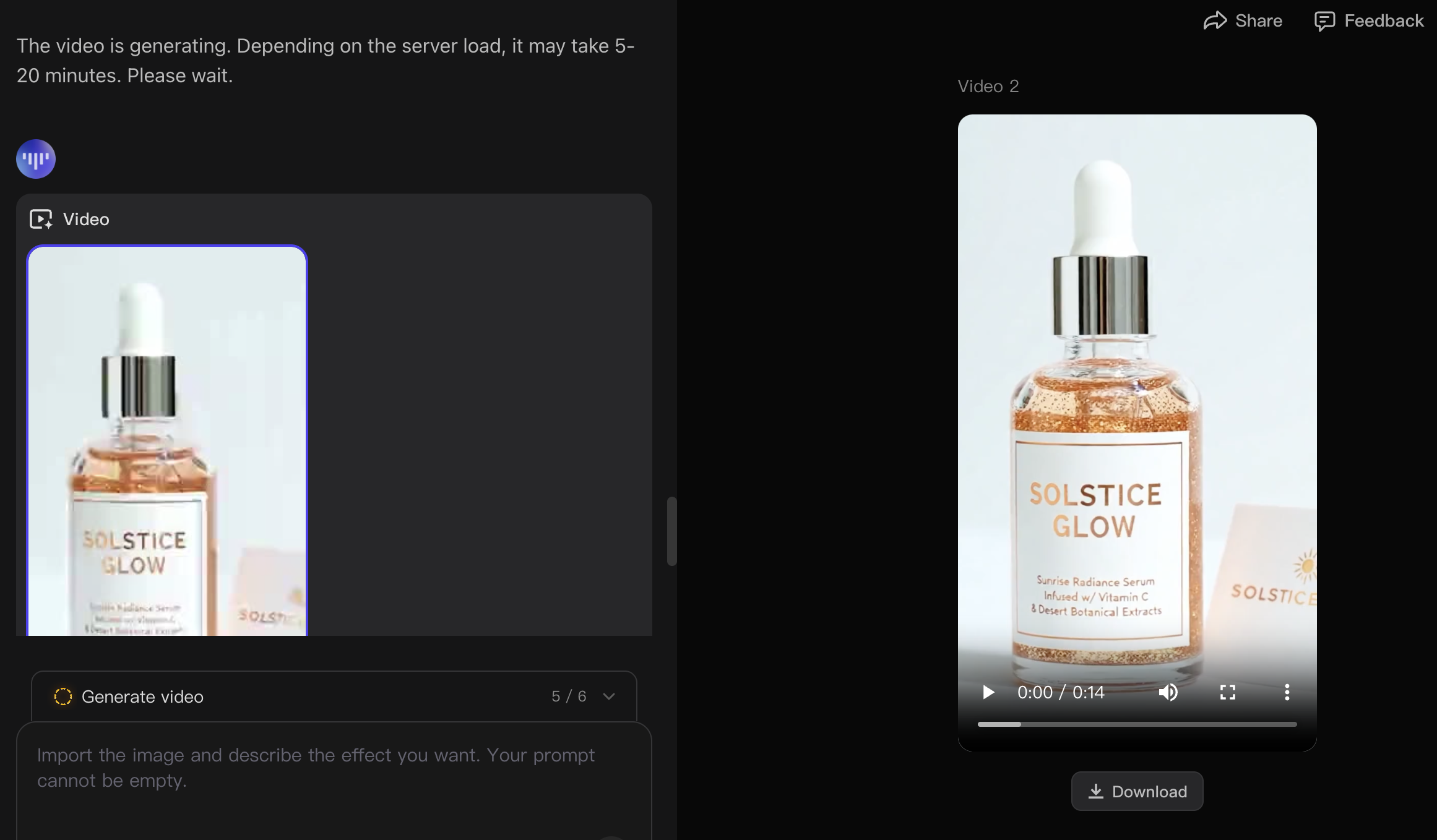 Upload one or multiple product images or reference video.