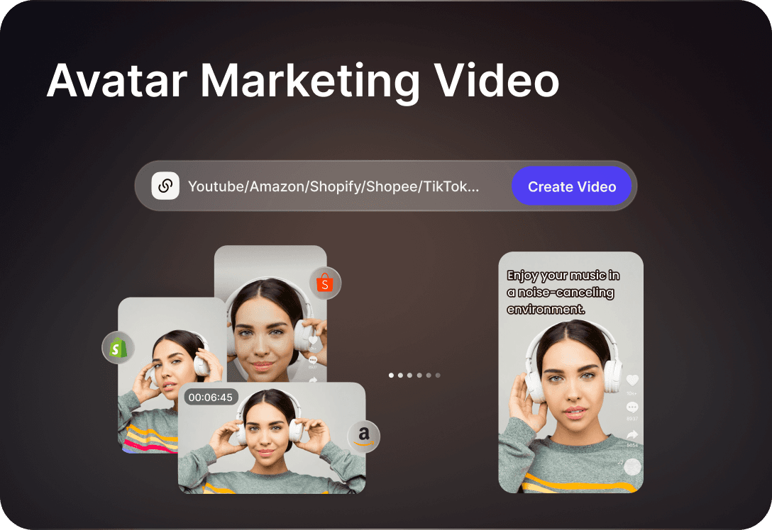 Product Link to Video: Input an Amazon or TikTok product link. The AI automatically extracts images, videos, and copy from the product page and generates a video with one click.