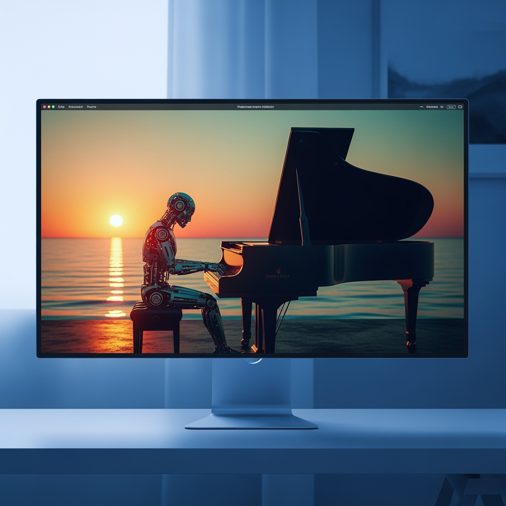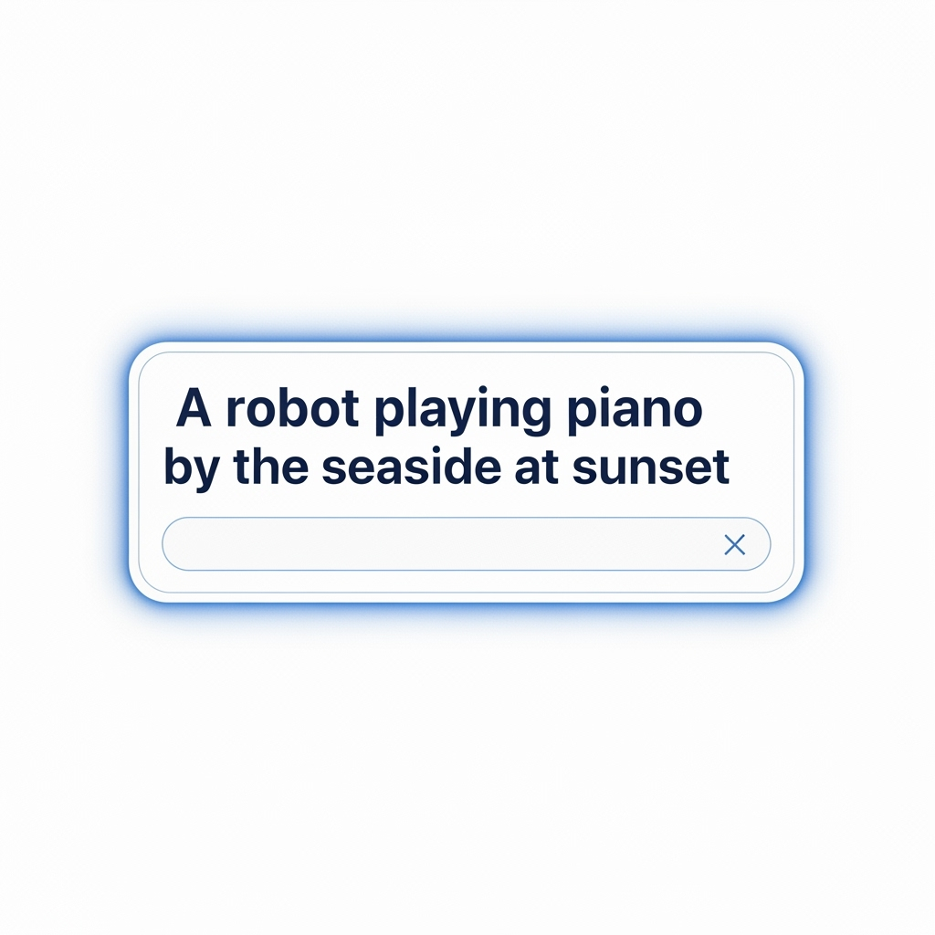 Simply type a prompt such as: “A robot playing piano by the seaside at sunset.”
