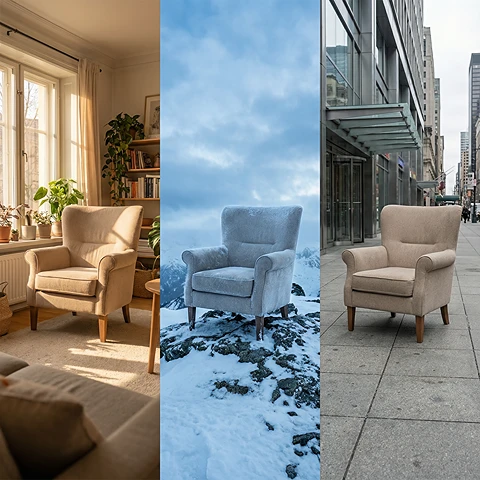 Place your product in a cozy living room, a snowy mountain peak, or a neon-lit cyberpunk city without reshooting. Veo4 generates complex environmental interactions, shadows, and reflections that ground your product in reality for higher conversion rates.