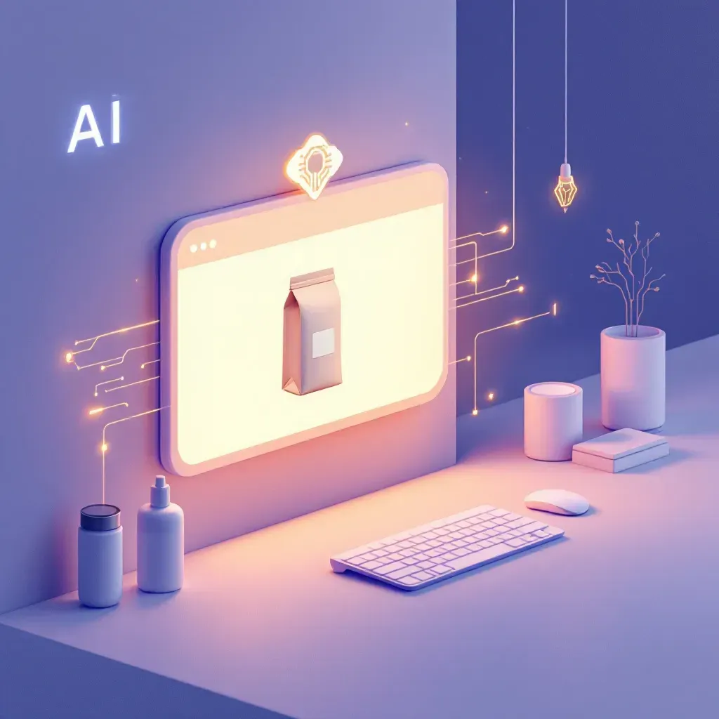 請輸入簡短的文字提示,例如「奢華金色調化妝品包裝」或「環保極簡風盒裝設計」。AI 會立即為你視覺化效果。